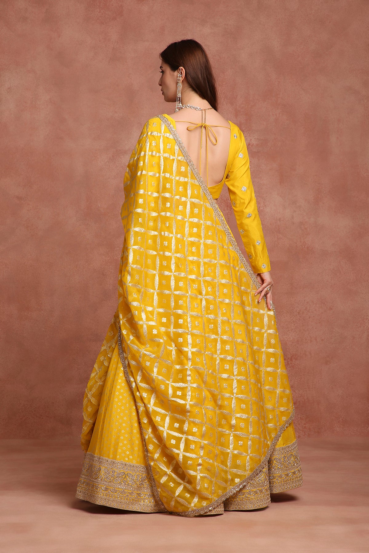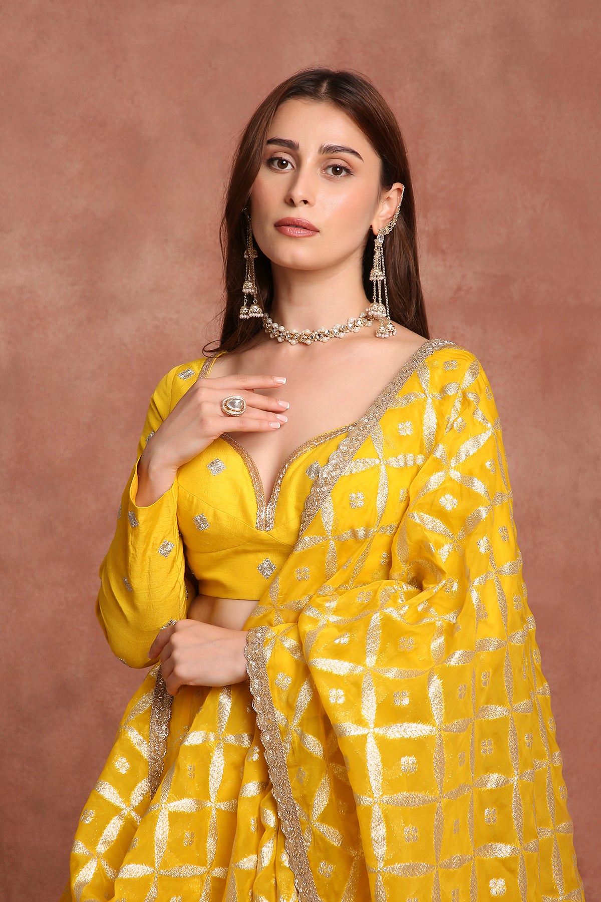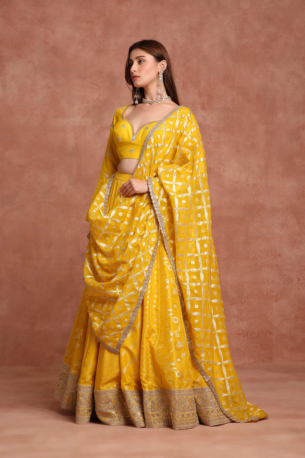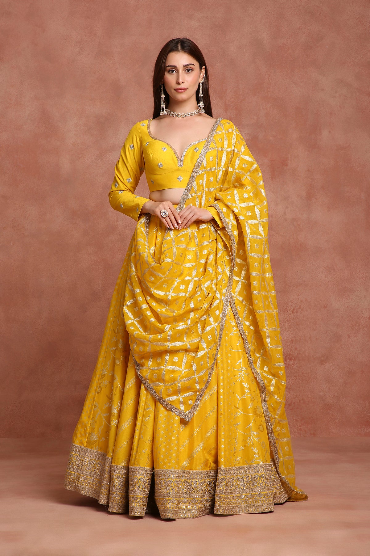 Bring sunshine and celebration to life with this radiant mustard yellow lehenga choli set. This vibrant outfit is designed for haldi ceremonies, daytime weddings, and joyful festive occasions—where brightness, tradition, and style converge.